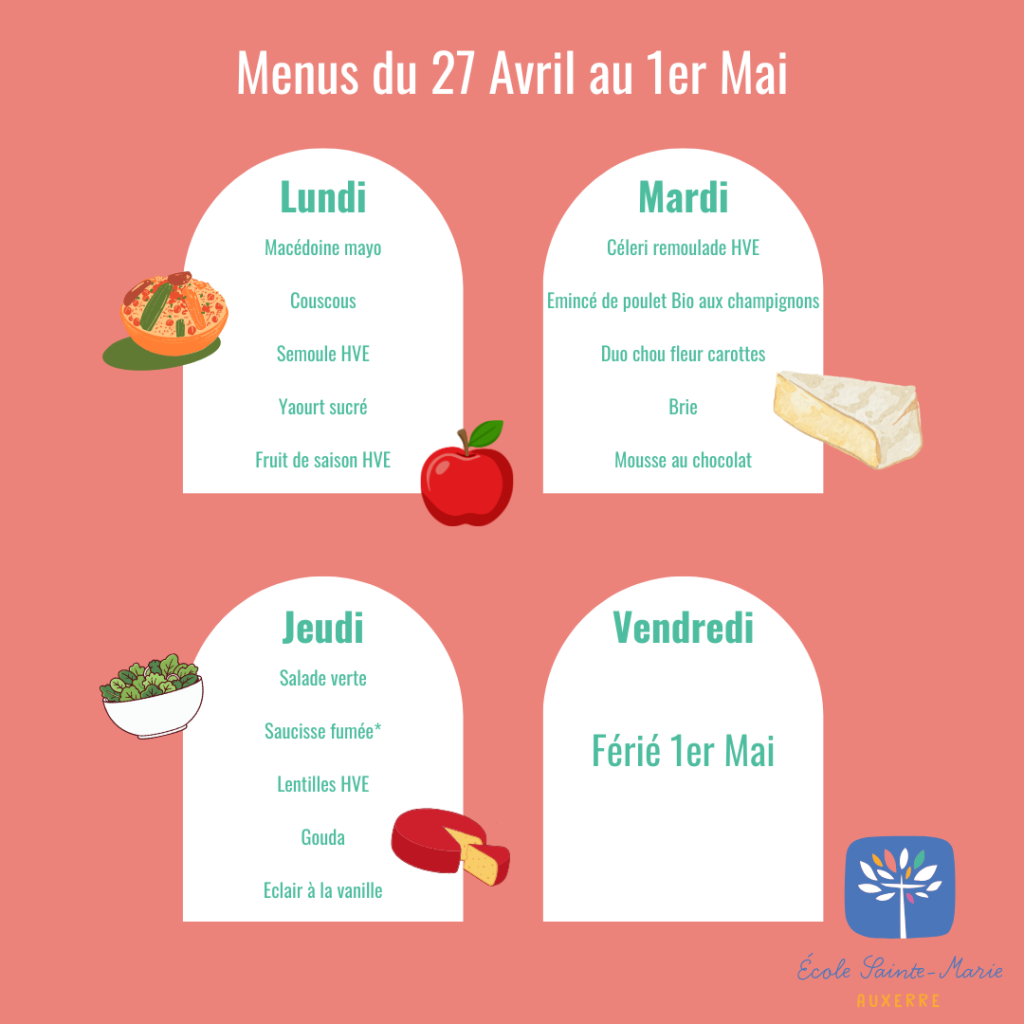 Repas cuisiné dans l'école Deux services en maternelle Self à partir du CP