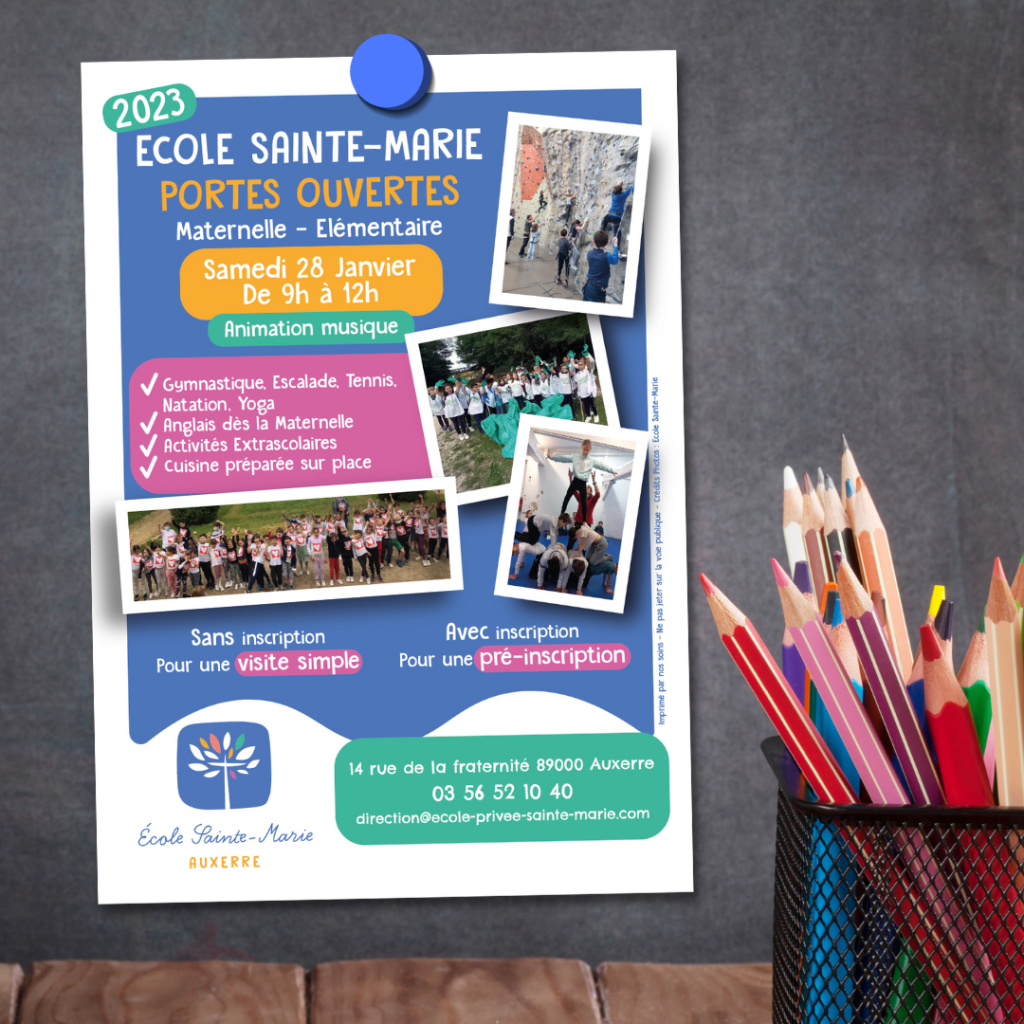 L'école Sainte-Marie organise une matinée portes ouvertes le samedi 28 janvier de 9h à 12h, afin de permettre aux parents et aux enfants intéressés de découvrir notre école « en fonctionnement ».